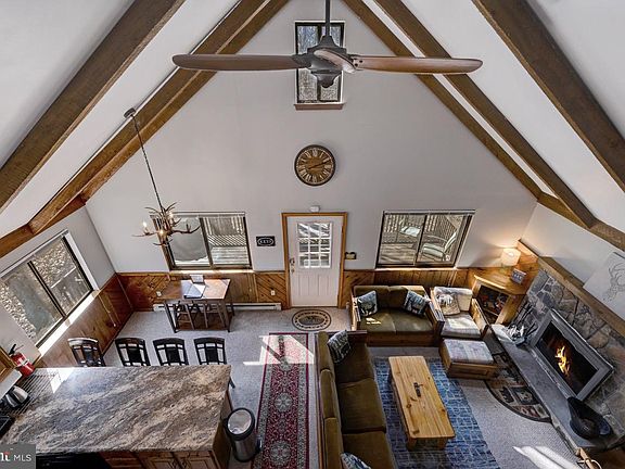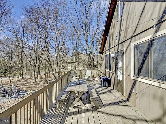Come and see your next vacation home or short rent rental or use it as both! 20 Vista Ln is part of Lake Harmony Estates, a short term rental friendly HOA with boat and beach access to Lake Harmony, one of the few motor boat lakes in the Poconos. An easy drive from Philadelphia or New York, the home is about a 5 minute drive from Big Boulder Mountain and 15 minutes from Jack Frost Mountain. When you pull into the expansive driveway, you will see your private wooded lot, fire pit area and multiple decks. Your lower covered deck has a hot tub, a must for any mountain retreat. After you use your electronic lock to get into the house, you walk into your large foyer with lots of closets. To your left you will find your family room with stone fireplace and powder room. The entry level also includes the laundry room and a ground floor bedroom. Upstairs is the main living room with stone fireplace, cathedral ceilings and access to the elevated deck. The living room is also open to the dining area and kitchen. Two bedrooms, including a bunk room and a full bath complete this floor. The top level is the sleeping loft with beds for another 4 people. The home comes completely furnished, including all furniture, appliances, dishes, sheets, towels - it is a turn key str. The owners have used the home primarily for themselves but have just recently opened up the calendar for future bookings. Owners would be happy to transfer Airbnb account with a perfect 5.0 review history.