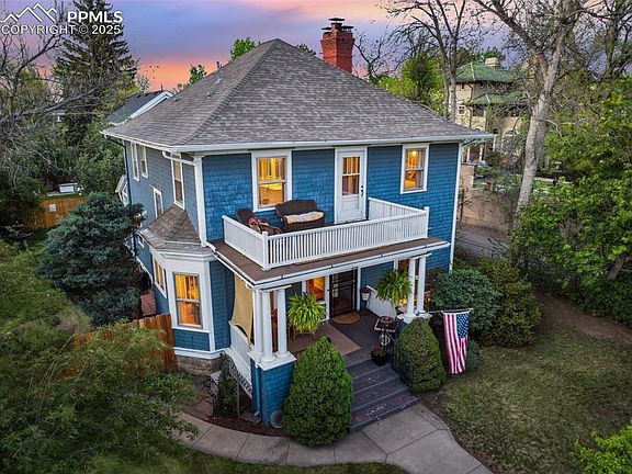 Classic 1910 property in a premium location in the Old North End Neighborhood.This historic American Foursquare home offers the charming character and quality of a handcrafted home along with modern updated mechanicals for peace of mind. Sit on your private front porch or upper deck that have views towards the south and west as you look towards the mountains. Three fireplaces with original tile, built-in bookcases in every room and Craftsman trim throughout historically preserve this house while also making it a joy to live in today. Located in the sought after historic Old North End, this home features new central air conditioning, new furnace and insulation so it is efficient and cozy. The upstairs has a primary suite with its own beautifully updated bath and walk in closet with washer/dryer. Two additional bedrooms have a fully updated bathroom as well. The kitchen boasts soapstone counters, KitchenAid appliances, solid hardwood floors, solid wood cabinets and a throwback butler's pantry for lots of storage. Built in window seat in the dining room adds to the uniqueness and beauty.Dining room with fireplace has room for the whole family during the holidays! The main level has its own powder room, and basement has 3/4 updated bath - making a total of four bathrooms. The just finished renovated basement includes a private apartment with its own separate access. Basement has a new kitchen, updated bath, charming built-in bed nook and living room - an excellent guest space, teen suite, etc... The yard is truly a private oasis of mature trees and privacy. This space has been cared for over the generations providing a green sanctuary for you to enjoy. Located two houses to the east of Wood Avenue, four blocks to Colorado College. Walk to Monument Valley Park, bike downtown and enjoy living in this sought after neighborhood!