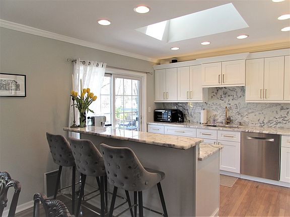 Beautiful, raised ranch meticulously maintained in a desirable area. New kitchen featuring custom white cabinets, dolomite countertops with island and countertop seating, above cabinet indirect lighting, separate eating area, new Samsung refrigerators and stainless-steel oven dishwasher and stove, Hardwood floors throughout, finished basement with heated travertine floors and beautiful gas fireplace. Recently updated master bedroom bath with white Carrera marble, RH vanity and mirror. Crown molding and recessed lighting throughout the house. Inviting newer deck right off the kitchen with patio door, lighting on post facing the big yard. close to shopping and dining in downtown Arlington Heights, expressways and commuter train, your client won't be disappointed.
