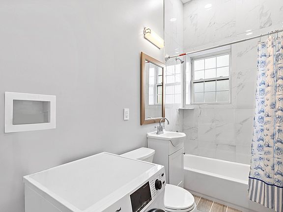 Very spacious renovated modern Apartment offers:All brand new 1 Bedroom,1 Full Bath,Awesome Highly Upgraded Kitchen with Tall cabinets,Quarts counters, Quality gas stove,Brand new hardwood floors, Gorgeous Living area, Large windows,generous closet space, great lighting, High ceiling throughout!Open floor plan, newer washers-dryers in basement,storage unit included in rent, Parking, trash, water/hot water, heat INCLUDED IN RENT. Vacant, ready to move in., Excellent location, close to NYC transportation and all main roads. Parking, trash, water/hot water, heat INCLUDED IN RENT.
