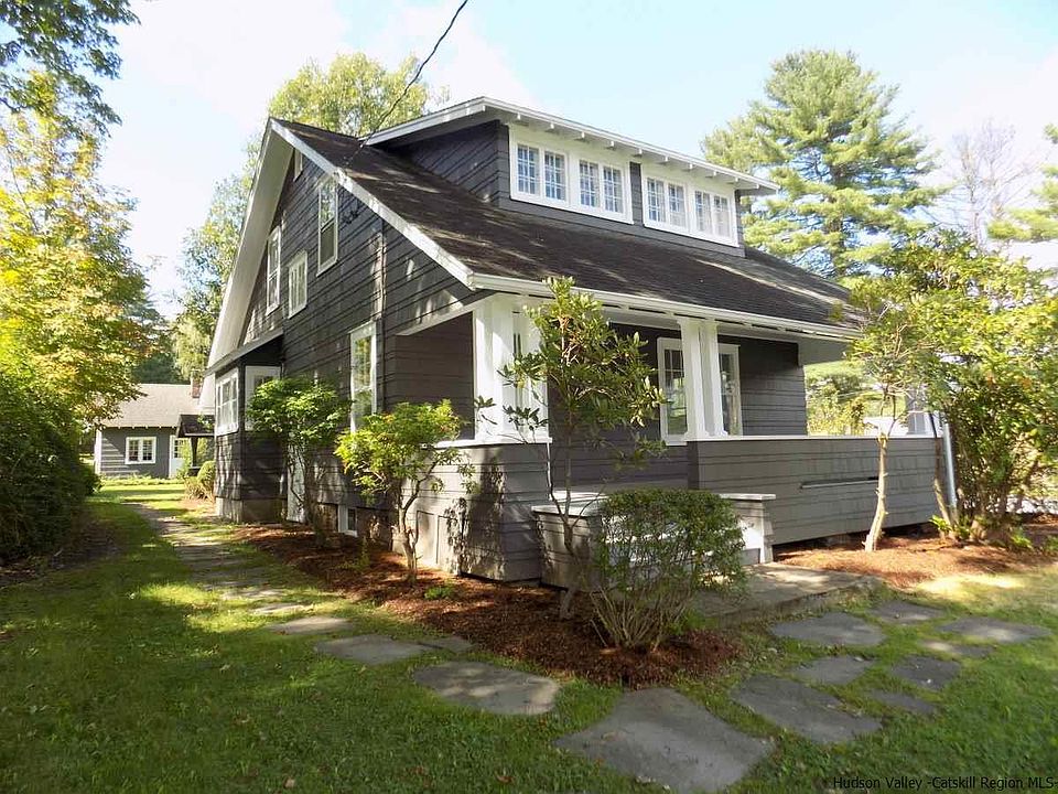 This pristine 1920's Arts and Crafts shingle sided cape is located at the entrance to Woodstock and features 3 beds, 1.5 baths, two fabulous open porches, a new boiler and well pump and a classic country kitchen with maple butcher block countertops. There is also a really cute 800 sq. ft. detached garage with second floor storage space with lots of possibilities as a studio or accessory apartment. Many, many details are original to the design and it is an unusual opportunity to own a vintage home in Woodstock walking distance to schools, restaurants, shopping and golf.