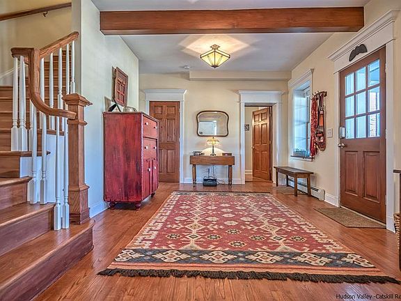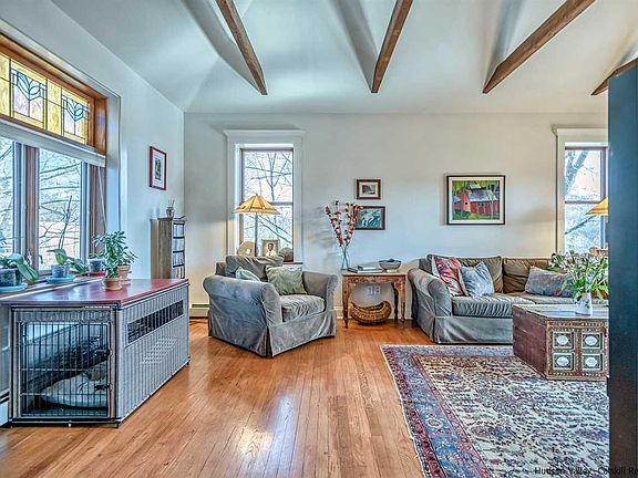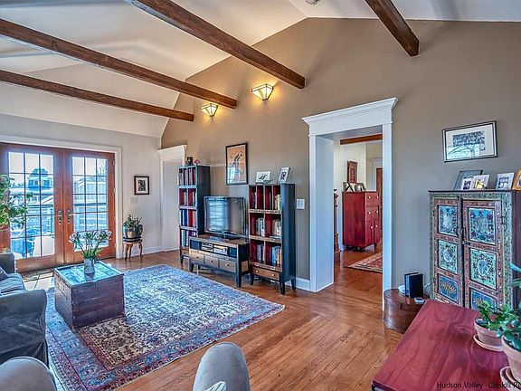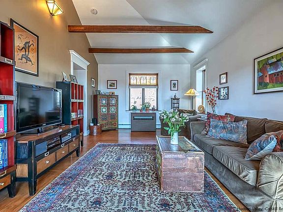 Built in the 1800's, this 3-level living space brick home is located in the often-sought Historic Rondout District. Gracefully situated away from the road, you'll be immediately taken in by the covered porch where you can enjoy the beautiful serenity of Cornell Park and views of the colorful church steeple by the Rondout Creek Bridge. The minute you step into the 12x16 Foyer, you feel a blending of the old with the new. Totally renovated within the last 10 years, updates include hardwood and bamboo flooring throughout the house, beamed cathedral ceilings and crown molding along the 19 foot ceilings. Through the spacious living room, step through the double doors leading you onto a deck featuring built in seating and gorgeous views of the Hudson River and Rondout Creek. Walk back inside to a large eat-in kitchen with custom cabinets, granite countertop, 5-burner gas range, pantry. Off the kitchen is a 3-season Florida room with skylights with a door leading outside to the completely fenced-in bluestone back yard. Also on this level is a bedroom and bathroom. The entire 2nd floor is the master bedroom suite, complete with walk-in closet, washer & dryer and a large steam bath/shower with built-in seating. Lower level has one bedroom and through a pocket door is another room perfect for a home office or home gym. Both of these rooms offer easy access outdoors. You'll enjoy living by the water with plenty of restaurants, shopping, and only 90 minutes from NYC!
