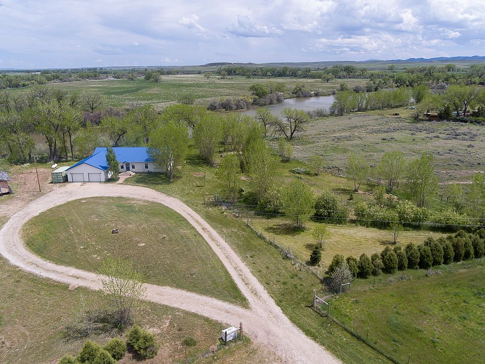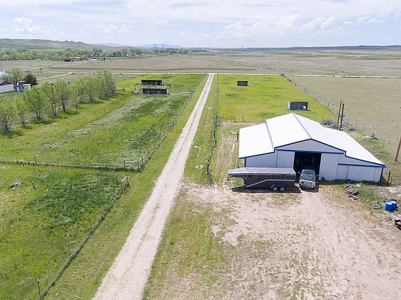 FVH RIVER PROPERTY -Glenrock, Converse County, Wyoming: Located on the banks of the North Platte River this extremely well-maintained 7.4± deeded acre property has a home, metal barn, seven irrigated paddocks with four loafing sheds, and many mature trees. The open floorplan 2,368 sq ft home was built in 2002 with four bedrooms, two and a half baths, a 848 sq ft garage with double overhead doors, and a large deck overlooking the river. The 3,596 sq ft barn was built in 2007 and has an office, tack room, and is plumbed for water. The seven irrigated paddocks are planted to Timothy and Orchard grasses, have automatic waterers, and contain two 256 sq ft loafing sheds, and two 128 sq ft loafing sheds. A large, fenced garden with raised beds is located in the expansive backyard, and there are also a variety of mature fruit trees fenced in as well. Drinking water is provided by a 120 ft well, and irrigation water is pumped from the river.