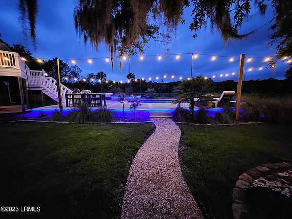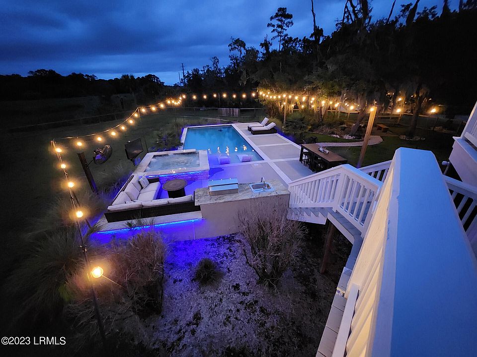 No showings Until 6-25-2023, Homes like this don't come on the market very often. Chance to have your own private resort! This home sits on almost 2 private acres with no one in sight. No HOA! West-Facing Backyard for beautiful sunsets while enjoying your spa style saltwater pool and hot tub. Watch your favorite shows and movies right in your back yard on your 50'' outdoor TV while using your industrial fans to stay cool. Or gather around your firepit and relax to a smart speaker playing your tunes. Your view across the tidal creek and marsh will always be preserved by a Beaufort Open Land Trust property consisting of 400 acres promising no development! All the close by tracts are larger acreage ones owned by local families that have lived in the area for years. During the day you'll see animals using the creek and salt marsh flats. Although the current Dock Permit just expired it was approved for a 90 foot dock with 10 x 10 covered pierhead, 12 x 12 boat lift and 8 by 10 float . This large waterfront home offers an open living space and newly remodeled kitchen with custom cabinets and under cabinet lighting, wet bar, tons of shiplap, consisting of 5 bedrooms, an office, a loft recreation/TV space, dining space, 3 full baths and a half bath. The current owners purchased this home in need of a lot of repair and have put a great deal of money into this home over the past year restoring it. Just a few of the items include new roof, exterior completely repainted, new driveway, gutters, fencing, so many electrical upgrades, making a lot of the home a smart home and just many more too many to list here (Request a detailed listing of all the work). The carport and basement area provide tons of storage space and a workshop. This TRULY is a MUST see and experience home. Can't imagine it lasting very long on the market! Close enough to town to get food deliveries. 10 minutes to Publix and 15 to downtown. Also has 1 gig internet! Owners are also including Amazon Astro Household Robot with a full price offer. These are currently only available from Amazon by invitation only. Astro can control your lights, HVAC, patrol your home when your away or asleep, gets to know each person in the household and can remind them of things to do (he will drive around until he finds you), these are just some of the features it has. Note, owners are willing to sell some items on a separate bill of sale if a price is agreed upon. Items purchased would be in addition to the contract price.