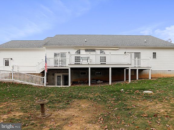 Very well-built contemporary style home on one level built by Jim Harvey and meticulously maintained by the current owner. Rock on the covered front porch or enjoy the rear deck views with the electric awning for shade. The corner lot features a storage shed and beautiful lawn. The interior has an open floor plan with gorgeous hardwood floors throughout. The living room has a cozy stone propane fireplace for those cool evenings, that flows right in to the large kitchen with pantry & plenty of cabinets & countertop space. There is a breakfast area overlooking the rear deck and a formal dining room with views of the front yard. The larger primary suite has hardwood floors, French doors that lead to the rear deck, a large walk-in closet & a spacious bathroom with tile shower, dual sink vanity and a walk-in tub feature. There are 2 additional bedrooms, another full bathroom that is access from the hall & through one of the additional bedrooms. The lower level is finished with a family room with wet bar & another full bathroom with unfinished space for storage. The 2 car attached garage has 8' garage doors & attic access for additional storage. Lakewood is a private residential lake community with over 500 acres & nearly 3 miles of lake shoreline, playgrounds, trails, beach area with pavilion & restrooms. It is just a couple of hours from Baltimore, DC & Northern Virginia.