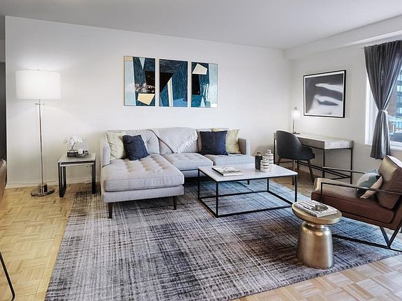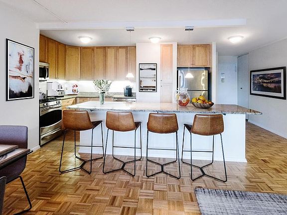 Beautifully refinished two bedroom, two bathroom apartment featuring a newly expanded kitchen with granite countertops and stainless steel appliances. With stylishly remodeled baths, and oversized bedrooms, this home provides breathtaking East River views that are the star of the living and dining areas. Net effective $5,416, one month free rent and $1000 Uber credit on 24 month lease.Two-acred landscaped plaza w/ river and city views, year-round activities schedule, playgrounds, on-site preschool, free Wi-Fi, sundeck, restaurant/lounge on site, groceries, banking, dry cleaning, shopping on-site