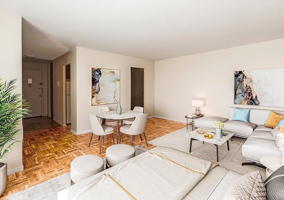 Mid floor studio apartment with classic kitchen, ample closet space with private dressing area, and north views to the river and city. 497 sq. ft. Available 4/19Two-acred landscaped plaza w/ river and city views, year-round activities schedule, playgrounds, on-site preschool, free Wi-Fi, sundeck, restaurant/lounge on site, groceries, banking, dry cleaning, shopping on-site