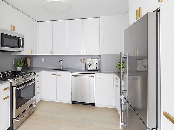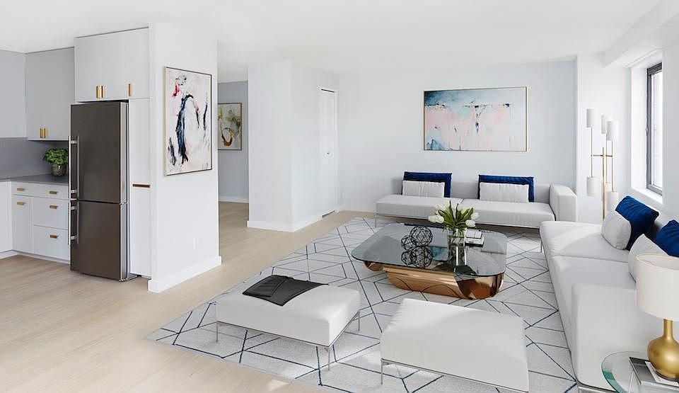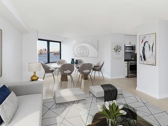 Two bedroom, two bath apartment offering a full floor to ceiling renovation by WhiteHall Interiors. The kitchen features quartz counters and full back splash, top of the line appliances, master en suite bath and walk in closet, extended living area, and northwest/west/south mid floor views of the plaza and city. 1062 sq ft. Two-acred landscaped plaza w/ river and city views, year-round activities schedule, playgrounds, on-site preschool, free Wi-Fi, sundeck, restaurant/lounge on site, groceries, banking, dry cleaning, shopping on-site