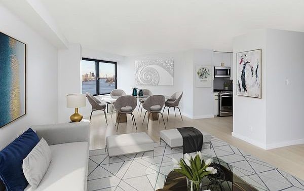 Two bedroom, two bath apartment featuring floor to ceiling renovation by Whitehall Interiors. The kitchen offers quartz counters and full back splash and top of the line appliances, the master bedroom includes a walk in closet and full bath, desert oak flooring throughout, and mid floor northwest/west/south views to the plaza and city. 1062 sq ft. Available now.The rent shown is the Net Effective Rent, with 1 month free on a 12 month lease, given at the beginning of Lease. Tenant will pay the Gross Rent for the remaining months.Two-acred landscaped plaza w/ river and city views, year-round activities schedule, playgrounds, on-site preschool, free Wi-Fi, sundeck, restaurant/lounge on site, groceries, banking, dry cleaning, shopping on-site
