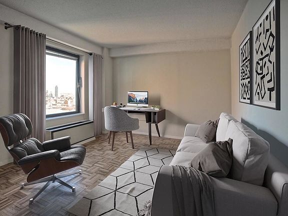 High floor three bedroom, two bath apartment offering a new maple and granite kitchen, ample closet space, master en suite bath, and west/south/east views of the river and city. 1158 sq ft. Available now.The rent shown is the Net Effective Rent, with 3 (or 2) months free on a 12 month lease, given at the beginning of Lease. Tenant will pay the Gross Rent for the remaining months.Two-acred landscaped plaza w/ river and city views, year-round activities schedule, playgrounds, on-site preschool, free Wi-Fi, sundeck, restaurant/lounge on site, groceries, banking, dry cleaning, shopping on-site
