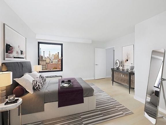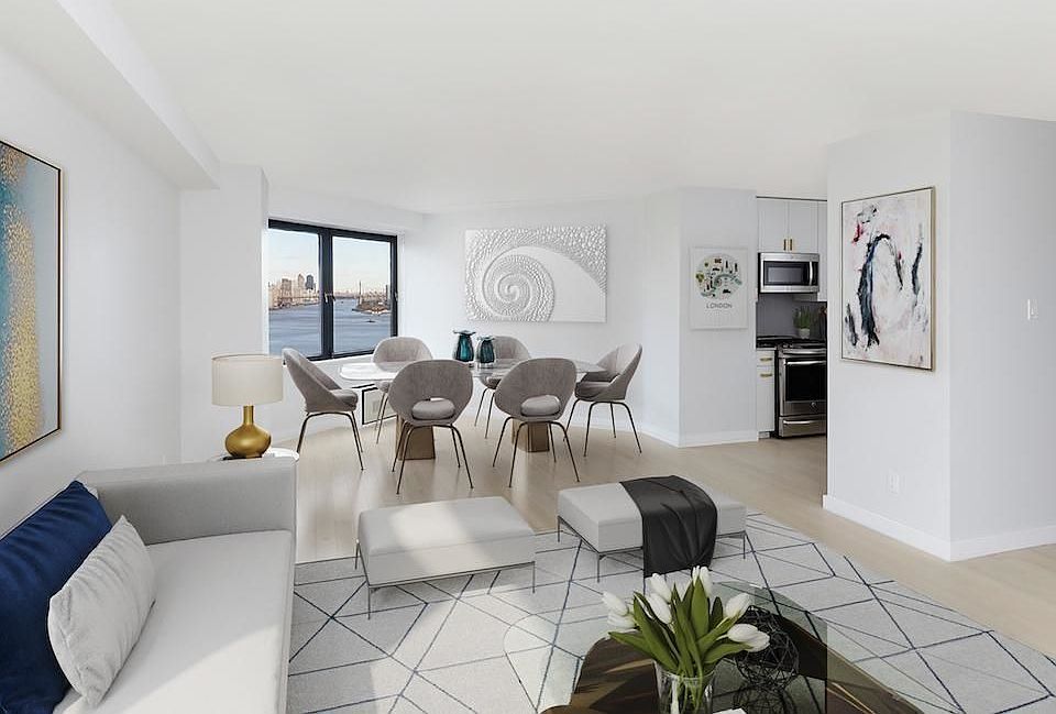 High floor two bedroom, two bath apartment by WhiteHall Interiors. The chef's kitchen offers quartz counters and full backsplash with top of the line appliances, master en suite bath, generous closet space, and northwest/west/south views of the plaza and city. 1062 sq ft. Available now.Two-acred landscaped plaza w/ river and city views, year-round activities schedule, playgrounds, on-site preschool, free Wi-Fi, sundeck, restaurant/lounge on site, groceries, banking, dry cleaning, shopping on-site