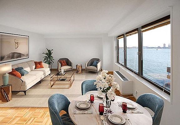 Low floor one bedroom, one bath apartment with newly renovated kitchen with maple cabinets, granite counters, and stainless steel appliances. Will flex to two bedroom with approved room divider. Ample storage space throughout including a walk in closet and west views to the plaza and city. 672 sq ft. Available 10/12.Currently offering one month free. The rent shown is the Net Effective Rent, with 1 month free on a 12 month lease, given at the beginning of Lease. Tenant will pay the Gross Rent for the remaining months. Two-acred landscaped plaza w/ river and city views, year-round activities schedule, playgrounds, on-site preschool, free Wi-Fi, sundeck, restaurant/lounge on site, groceries, banking, dry cleaning, shopping on-site