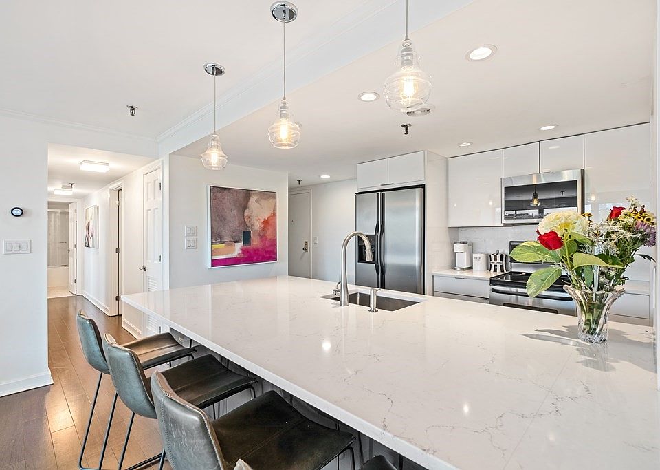 This bright, modern and beautifully renovated gem offers 2 bedrooms, 1.5 baths and an open living/kitchen with views of the courtyard and pool. Nestled in the heart of Coolidge Corner, in the very desirable Webster Place, this designer unit features stunning wood floors, white lacquer cabinets, a huge island with quartz counters and storage on both sides, stainless steel appliances and recessed lighting. Every detail was considered when renovating this well-laid-out home which has in-unit laundry, central AC, and great closets. There is one garage parking and full-service building amenities which include concierge, swimming pool, a lovely landscaped courtyard, fitness center, on-site maintenance and a large lobby/atrium for greeting guests. Close proximity to shops, restaurants, the T (Green Line C), 66 Bus, Longwood medical area, colleges/universities, Griggs Park and so much more!