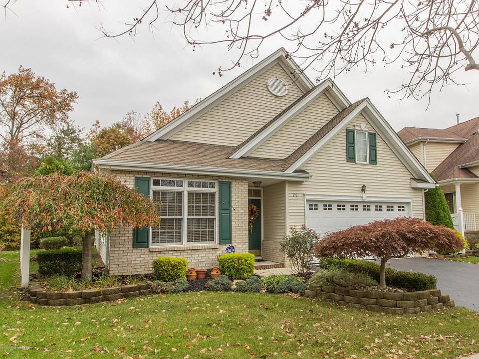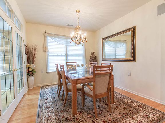 You will be delighted by this very spacious expanded Bordeaux with fabulous 24 X 20 great room! Wonderful large windows provide beautiful views of the very private treed backyard! An attractive entry door with glass accents lights up the foyer and welcomes you into a great new lifestyle! Hardwood flooring flows throughout the gathering areas including the kitchen! A large center island is the hub of the kitchen and looks into the great room. Holiday entertaining is still very possible in the oversized dining room! There is even a den with French doors! Privately located, the master suite offers two walk in closets, a well-appointed bath with whirlpool tub and stall shower and a wall of windows overlooking the yard! A second bedroom is in close proximity to the second full bath.