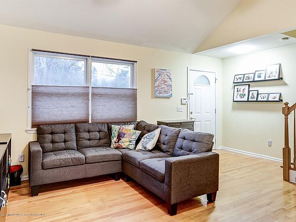 Beautifully maintained 6 room Colonial Charmer featuring handsome wood floors throughout, living room with vaulted ceiling open to formal dining room, pretty powder room, and fully equipped, eat-in kitchen with small center island & sliding doors to generous sized deck which offers plenty of space for outdoor enjoyment; there's also an outdoor shower for after beach fun! All three bedrooms are upstairs including spacious, full bath with tub. Full finished basement with good storage, playroom and office area, one-car garage & large fenced backyard make this property a SOLID CHOICE!