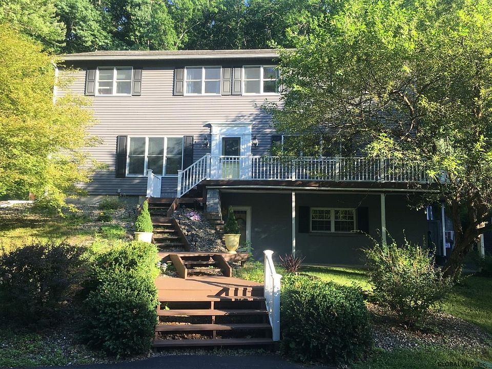 Set high on a hill, incredibly maintained three bedroom home with living space on all three floors. The first floor features an enormous kitchen with granite countertops as well as a center island perfect for cooking and entertaining. The spacious living room complete with fireplace opens to the second floor with a loft and three bedrooms. Downstairs is an incredible game/rec room, perfect size for a pool table and more. Sit and relax on the private back deck overlooking the oversized above ground pool with maintenance free deck . On the opposite side of the home is a detached 2 car garage with a third bay for the lawn tools, as well as a walk up storage area, perfect for extra items or finishing into an office. All of this within the Averill Park school district and priced to sell!!