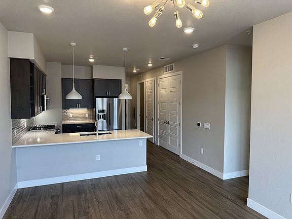 Welcome to Unit 603 at Encore, Castle Rock's premier luxury condominium community. This stunning 2-bedroom, 2-bathroom residence offers high-end living in the heart of downtown, with everything you need just steps from your front door. Perched on the 6th floor, this light-filled unit features sweeping views of the mountains and the vibrant downtown scene below. Inside, you'll find a thoughtfully designed open floor plan with wood-style flooring, tall ceilings, and oversized windows that flood the space with natural light. The chef-style kitchen is equipped with quartz countertops, stainless steel appliances, and a gas range! The primary suite is a true retreat with a large walk-in closet and an elegant en-suite bathroom. The second bedroom and full bath offer flexibility for a guest room or home office. Step outside onto your private balcony to enjoy a quiet cup of coffee or watch the sunset over the Rockies. This unit includes in-unit laundry, central heating and cooling, and two reserved covered parking spaces in the secure garage. Utilities are covered with a $250/month RUBS fee, which includes water, sewer, trash, and parking. Encore's resort-style amenities are among the best in Castle Rock. Residents enjoy access to a full fitness center, pet wash, golf simulator, community lounge, business center with private meeting rooms, and an outdoor terrace complete with firepits, grills, and a dog run. With secure building access, elevators, and a location that's walkable to shops, dining, Festival Park, breweries, and morethis is truly downtown Castle Rock living at its best. Rent: $2,649/month RUBS: $250/month (includes water, sewer, trash, and 2 parking spaces) Located just steps from Festival Park, restaurants, breweries, and year-round events in downtown Castle Rock. Don't miss this rare opportunity to live in one of Castle Rock's most sought-after communities. Schedule your tour today! $50 Application Fee Must Pass Credit, Criminal and Eviction Checks Credit requirements: Applicants must have a credit score of at least 550 or No established credit to be considered for conditional approval. Applicant has the right to provide Anchor Real Estate with a Portable Tenant Screening Report (PTSR) that is not more than 30 days old, as defined in 38-12-902(2.5), Colorado Revised Statutes; and 2) if Applicant provides Anchor Real Estate with a PTSR, Anchor Real Estate is prohibited from: a) charging Applicant a rental application fee; or b) charging Applicant a fee for Anchor Real Estate to access or use the PTSR.