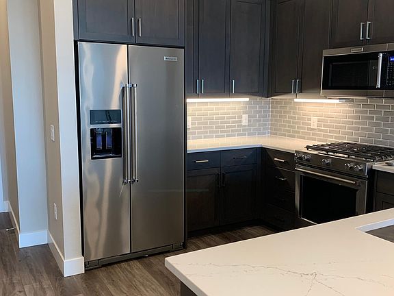 Be the first to live in this brand new, contemporary condo. Unit 713 is located on the top floor of the Encore Building overlooking the courtyard and features 10 foot ceilings, 9 foot doors, luxury vinyl plank flooring and a balcony. The kitchen boasts high-end KitchenAid appliances, including a gas range and an oversized pantry. There is an in-unit, full-sized LG stacking washer/dryer, a double sink/vanity in the bathroom, an oversize walk-in closet and a modern sliding glass shower door. Shade Store window treatments are automated and Minka Aire ceiling fans are remote enabled. There is a dedicated parking spot on the 7th floor. Amenities include a golf simulator on-premise, a brand new fitness center with a Peloton Bike, Eschelon Smart Touch Workout Mirror, cable pulley machine and plenty of free weights and treadmills. The second-floor club room has televisions, a microwave, dishwasher and refrigerator, a pool table and plenty of booths and tables for working or entertaining. It also opens out to a 25 person hot tub overlooking the courtyard. There is a Paw Spa for your furry friends and a dog park outside on the first floor. Festival Park is just a block away, which hosts concerts and a farmers market every weekend in the summer, and the Castle Rock Star Lighting during the holidays. Boutique shopping can also be found nearby, including a Castle Rock staple, The Barn. The Encore neighborhood is highly walkable for dining and nights out. Many nearby restaurants and bars include Great Divide, Tribe, Union, Dos Santos on the first floor of the building, Provision, B&B Cafe for breakfast, Scileppi's and many more! Additionally, there is a high-end salon/boutique and a Scissors & Scotch on the first floor for barbering and hair cutting needs. The Plum Creek Trailhead is nearby for running or biking and Philip S Miller Park is close by for hiking, biking, the Mini Incline, concerts at the Amphitheater and enjoying the Recreation Center. Lease length can be negotiated. Tenant is responsible for all utilities, conveniently payable by peer-to--peer mobile payment if preferred, otherwise check or money order. Landlord will send detailed billing statements monthly, before said bills are due. Pet deposit is $400 per, refundable per Lease Agreement terms.