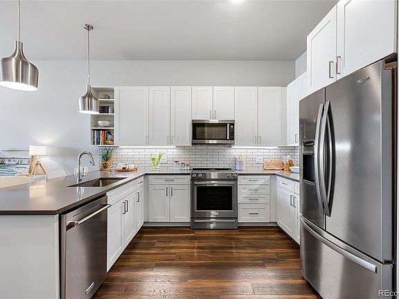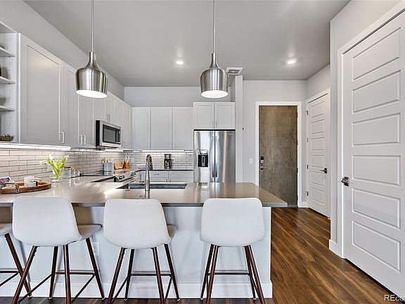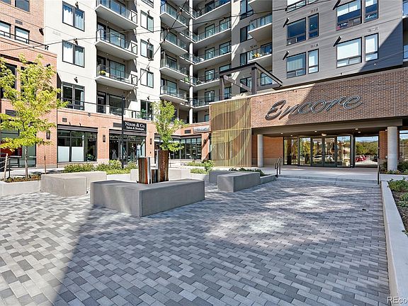 Welcome to living in a luxury resort at the Encore in downtown Castle Rock! This opulent building offers a lifestyle of convenience, low maintenance living, & turnkey luxury. The secured ground level entrance welcomes you with amenities including a stunning interior-designed lobby, a modern fitness center, & a private separate pet wash. Even your puppy will be impressed! Go to the second floor where you will find an exclusive clubhouse boasting a lounge area with a pool table, kitchen, large bar, booths, floor-to-ceiling windows. Just outside sits a heated pool, jacuzzi. Ready to be a golf pro? The private first-class golf simulator is the perfect place to entertain, relax or work on your swing. The trifecta of convenience is the covered parking garage, accessed again off the 2nd floor, where you can find your deeded parking space. Cameras monitor the garage 24 hours a day. This gorgeous property lives large with oversized windows that allow for the natural sunlight to fill the room. The resort like finishes continue in a chef’s kitchen with custom white cabinetry, under cabinet lighting, sleek quartz countertops & newer appliances. Relax in the generously sized living room. Enjoy the Colorado outdoors year-round from your private patio where you can see downtown Castle Rock & peak views. You will rest easy in your sanctuary of a primary suite. A stunning luxurious bath awaits you with a soaking tub, dual vanity, shower & modern lighting. Fashion lovers will love the walk-in closet with plenty of space for your clothing. Laundry is easy in your laundry room/storage closet. You can even fit a secondary fridge. All of this with a LOW monthly HOA- under $200 per month. Conveniently located in downtown Castle Rock, near Festival Park, an array of restaurants, bars, & coffee shops, memorable shopping & easily accessible trail system, you have big-city access with a small-town feel. All you need to do is lock and leave and head off to where your next adventure awaits!