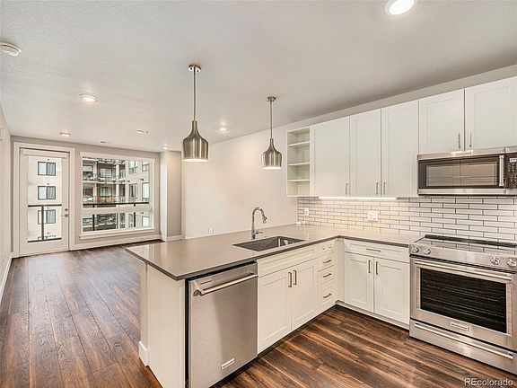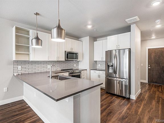 Check out this stunning condo in downtown Castle Rock! With two bedrooms, two bathrooms, two parking spaces, and this home offers amazing views of the city. Step through the front door into an open floor plan, featuring a modern kitchen with plenty of room for meal prepping. Enjoy easy access to the balcony, perfect for BBQs! The primary suite boasts a view of downtown, a walk-in closet, and a 3/4 bath. The spacious secondary bedroom has a full bathroom just across the hall. This complex offers fantastic amenities, including a gym, clubhouse for social gatherings, hot tub, and golf simulator. Easy access to the parking spaces. Located in the walkable district of downtown Castle Rock, you'll be close to restaurants, shops, and local events. Don't miss out on this incredible home!