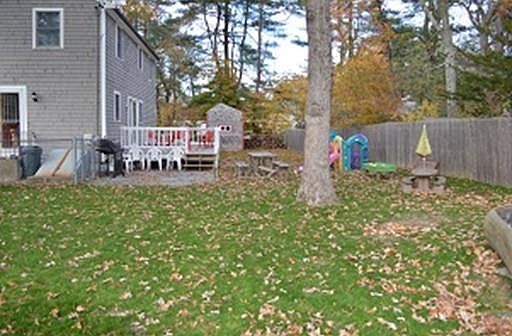 Move in ready, 3 bedroom 1.5 Bath, entertaining size dining rm/den w/bay window, hardwood floors, welcoming warm wood stove insert in fire place, beautiful built-ins, half bath. Connecting spacious living room, that leads to kitchen with large island. Step out french doors to large outside deck and patio for relaxing outside entertainment in fenced in yard. Mature trees such as: a beautiful burgundy color maple tree, Japanese maple and beautiful blooming rhododendron with purple and white flowers.. Storage shed. The 2nd floor has large master bedroom with his & hers closets. 2 additional bedrooms. The full basement offers tons of storage, laundry. Home is close to schools, Wareham Crossing shopping center with over 25 stores & restaurants. Quick access to highway. It's a Gem you must see. Covid-19 guidelines masks required. No showings until Open House May 1