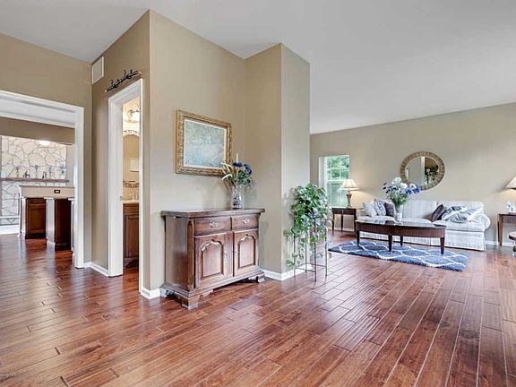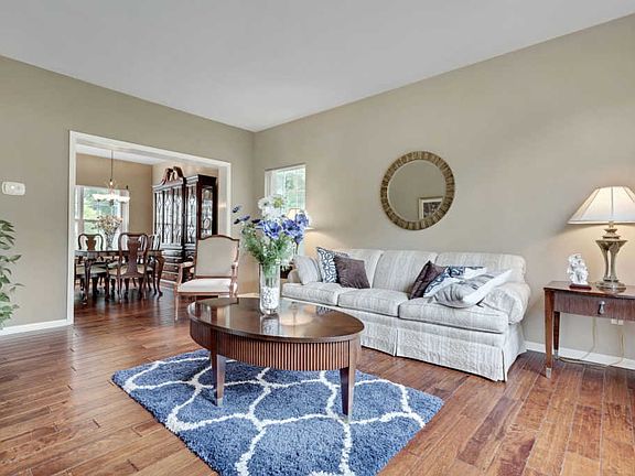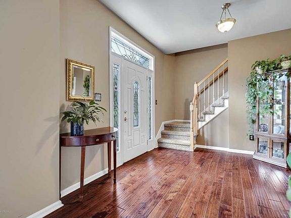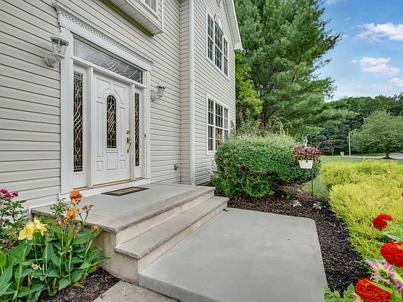 Sitting Pretty Towards the End of a Cul-De-Sac Street You Have Found Your New Home Sweet Home!*Packed with Value this 3 BR*2.5 bath*Beautifully Appointed Colonial Style Home is Filled with Charm and Value!*Open Foyer*Gleaming 3 Yr New Hand Scraped Hdwd Flooring throughout 1st Floor*Formal Living Room & Dining Rooms*Updated Open Concept Kitchen w/ Deco Molding & Chair Rail*Granite*Center Isl*Wine Buffet*Newer Appliances*Bkfst Area*Overlook to Family Room w/ Vaulted Ceiling*Dual Skylights*Floor to Ceiling Cultured Stone WB Fireplace*Sliders to Rear*Updated Half Bath*Laundry Room w/ Storage Cabinetry*Upper Level MBR Suite w/ WIC*En Suite w/ Dual Vanity*Soaking Tub & Shower*2 Add'l Spacious BR's*Full Finished Basement*Composite Deck*AG Pool*Retractable Awning*Irrigation*Shed*Backing to Woods!