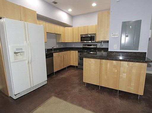 Terrific three-bedroom condo in sought after Highland/ WPI area* Sunsplashed open kitchen/dining/living room area with high ceilings* Great kitchen with Maple Cabinets, granite counters and stainless steel range & microwave* Master with walk-in closet and attached full bath* Two additional bedrooms* Second full bath* Laundry in the unit* Washer & Dryer included* Recent gas water heater* Gorgeous polished concrete floors* 2 deeded outdoor parking spaces* walk to WPI, downtown, and Highland St restaurants* Quick highway access