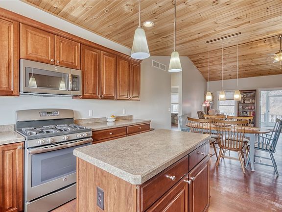 - Ceiling Fan(s), Cathedral Ceiling(s), Den, Eat-in Kitchen, Separate/Formal Living Room, Great Room, Kitchen Island, Living/Dining Room, Sliding Glass Door(s), Natural Woodwork, Bedroom on Main Level, Bath in Primary Bedroom, Main Level Primary, Primary Suite, Programmable Thermostat
