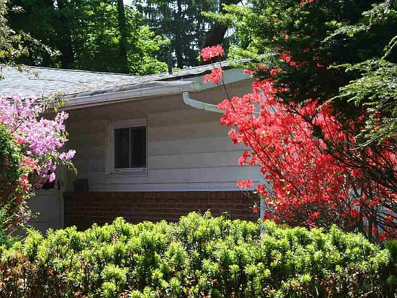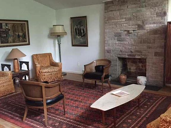 Mid century modern ranch located in quiet cul de sac within walking distance to several amenities! Well cared for home with soaring ceilings, hardwood floors, spacious bedrooms and two full baths. An abundance of light streams in through the wall of windows of the beautiful living room with stone fireplace. Great kitchen with plenty of built-in cabinets and swinging door to spacious dining room. Vaulted ceilings, hardwood floors and full unfinished basement. Large deck overlooks lush .47 acres. Priced to Sell!