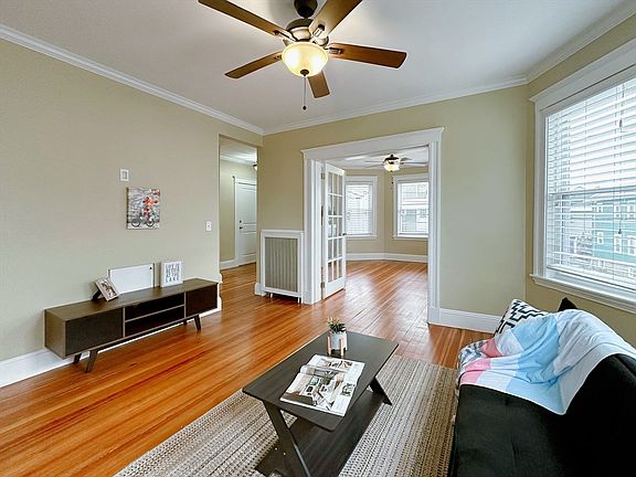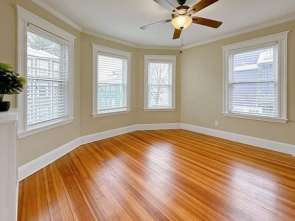 Quality 2011-2012 renovation near the Commuter Rail at Waverley Station and steps to the 73 bus into Harvard Sq! This immaculate two bedroom unit has a perfect mix of old charm and modern amenities with gorgeous fir floors and ample closet space. Spacious maple kitchen has GE stainless steel appliances, granite counters, island w/storage. Enjoy beautiful French doors, hardware, crown molding, and window treatments. Ceiling fans in both bedrooms and living areas plus an 11,000 BTU wall A/C will keep you cool on warmer days. Stunning full bath has two deep linen closets for storage. A nook houses a stackable washer/dryer and a door that leads to a private porch with plenty of room for a table and seating. Unit features a private porch in front of the home. Pet friendly association with shared yard. Easy two car tandem parking in the driveway and designated storage in the basement make this the perfect move-in ready home! Seller will give $3500 credit for buyer to fix or replace floor.