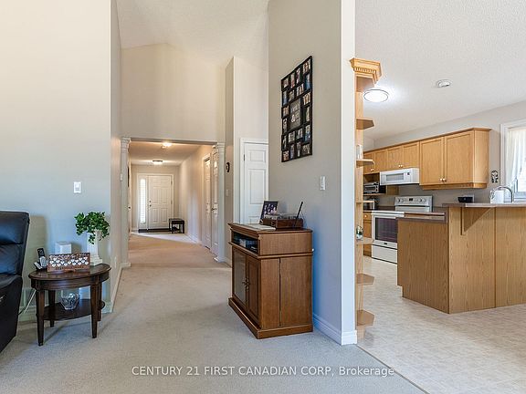 Welcome to this immaculate, fully finished 2+1 bedroom, 2.5 bath corner-lot condo located in the highly desirable Windemere Place community. Perfectly positioned near guest parking, this home combines comfort, space, and convenience. Step onto the charming front porch and into a bright, airy main level featuring vaulted ceilings and an abundance of natural light. The spacious great room is ideal for entertaining or relaxing with family. You'll love the large kitchen, complete with patio doors that open to a private deckperfect for morning coffee or evening BBQs. The main floor master suite includes a private ensuite, and the main floor laundry adds to the home's convenience. Downstairs, enjoy a generous recreation room with cozy gas fireplace, a third bedroom with a walk-in closet, and a full 3-piece bath. There's also ample storage space or potential for a workshop or hobby area. Additional highlights include a double driveway with single attached garage, low-maintenance living, and proximity to shopping, parks, and quick access to the 401 & London. The condo fees include lawn care, snow removal to the front door, shingle replacement, exterior brick work if needed, driveway and front step maintenance. Appliances included (Fridge 2022, Dishwasher 2022, Stove 2024, Microwave 2022, Washing Machine 2024, and A/C replaced 2022)