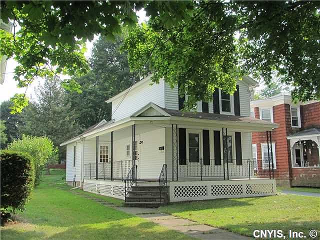 Great starter, large country kitchen, newer furnace, 1st floor bedroom, nice porch, 2 story barn. Stove and refrigerator stay with property. Seller does not warrant condition of appliances.