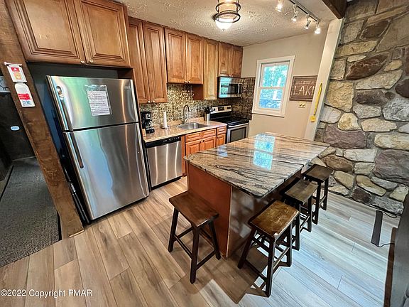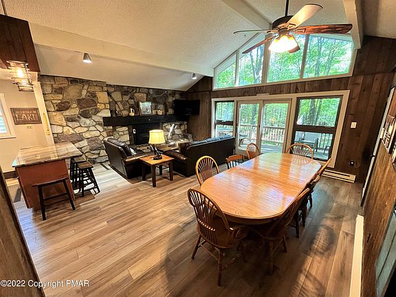 LAKE HARMONY--AWESOME CHALET-STYLE RAISED RANCH IN (short term rental friendly) LAKE HARMONY ESTATES! This 5 bed/3 bath beauty would make a GREAT VACATION home, RENTAL INVESTMENT, or COMBO of the 2! This home boasts classic mountain features--Great rm w/ stone-faced propane fireplace, soaring vaulted ceilings, wall of windows w/ tons of natural light! Split unit AC in Great rm! Kitchen w/ SS apps & granite island! Enjoy nature from the hot tub, paver patio, or spacious newer deck (17). Sprawling family room features cozy wood-burning fireplace & wet bar! Unwind on the beach @ beautiful Lake Harmony (power boats allowed)! Mins to restaurants, hiking, biking, rafting, Hickory Run State Park, Split Rock Resort, & Jack Frost/Big Boulder ski resorts! Mins to 476 & I80! Come see it today!