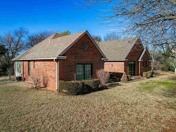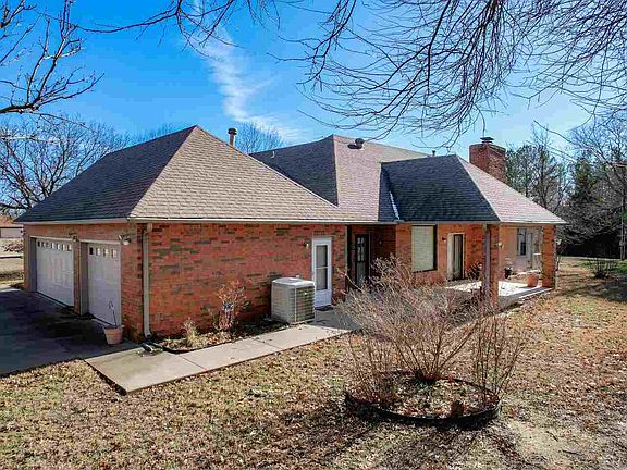 Wonderful single story home w/5.08 acres just East of Ponca City. Located on a quiet street off paved roads. This home features 3 oversized bedrooms including primary suite w/walk in closet, 2.5 bathrooms, & 3 car garage. Open concept living room dining room w/hardwood floors & fireplace. Eat in kitchen, lots of storage, center island, custom cabinets w/pull out drawers, inside laundry room & office/sunroom. The exterior includes large covered patio, Shop building, boat shed, stunning view!