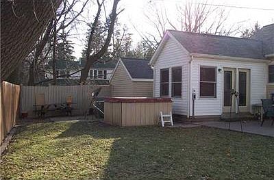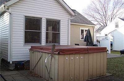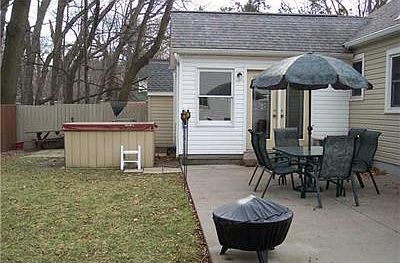 Move in ready! Updated Cape w/unique cathedral ceiling addition with patio doors leading to outdoor entertainment area overlooking beautiful treed rear lot! Tear off architectural roof, furnace, A/C, windows, siding 4-10 years new. Cozy fireplaced living room, hardwood floors, newer kitchen & bath. Spacious 1st floor master bedroom plus large bedroom on second floor! Glass block basement windows. Private patio area with hot tub! Quiet location. Close to all conveniences. Low taxes!