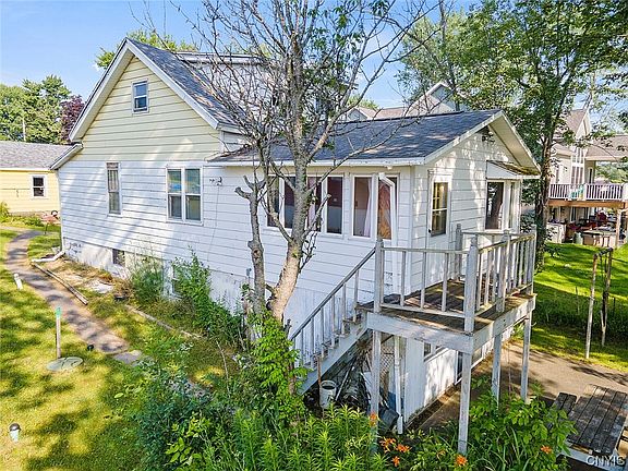 The POSSIBILTIES to MAKE THIS WHAT YOU WANT are ENDLESS! ONEIDA LAKE around 45ft of WATERFRONT w/SEAWALL, on .25 acre lot with 1274sqft Cape Cod w/another around 924sqft partially finished walkout basement & detached 24x20 garage. Great location, deep lot, bring your water boats and toys, & ride your snowmobiles to ice fish in the winter! Owned, lived in, and loved by current owner for years, and now the opportunity opens for someone else to love the LAKE. Lots of space on first floor with large bedroom, eat in kitchen, living room w/wood burning fireplace, full bath, & another room with lots of windows over looking the lake, & deck to backyard. Upstairs are 2 bedrooms, & another room for storage or a closet. Walk out basement has a second kitchen currently, half bath, laundry, mechanicals and a huge open room and porch. Right of way to water on left next door used by other homeowners not living on the water is convenient to drive to the back of your property as well. SOLD AS IS, CASH OR CONVENTIONAL. SCHEDULE TODAY. NO NEGOTIATIONS UNTIL AFTER JULY 11th 2023,12pm.
