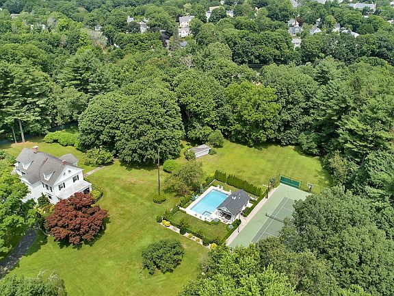 Extraordinary private four acre oasis, with pool, pool house and tennis court, provides an idyllic backdrop for this grand seven-bedroom Colonial. Easy access to nearby Candlewood Lake, located minutes from shopping and municipal airport with just a one hour drive to Manhattan. Original architectural details blend with tasteful updates in this landmark 1910 Estate. The gracious main level showcases fireplaces in key rooms; entry hall with majestic staircase, Palladian window; living room with French doors to mahogany veranda; dining room with carved cabinetry; family room/library with pecan bookcases and chef's country eat-in kitchen. The top two floors boast master suite; six bedrooms, three baths and attic. Features porte cochere and oversized detached two-car garage.