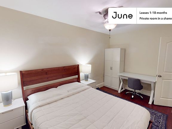 This Queen room in Mission Hill is available on a 12 month lease or a flexible short term (31 to 364 days) lease. You pick your custom start and end date. Monthly rent rate is determined by furnishing preference, move-in date and move-out date. Speak to a June representative for recommendations on the best stay duration for the lowest rate.