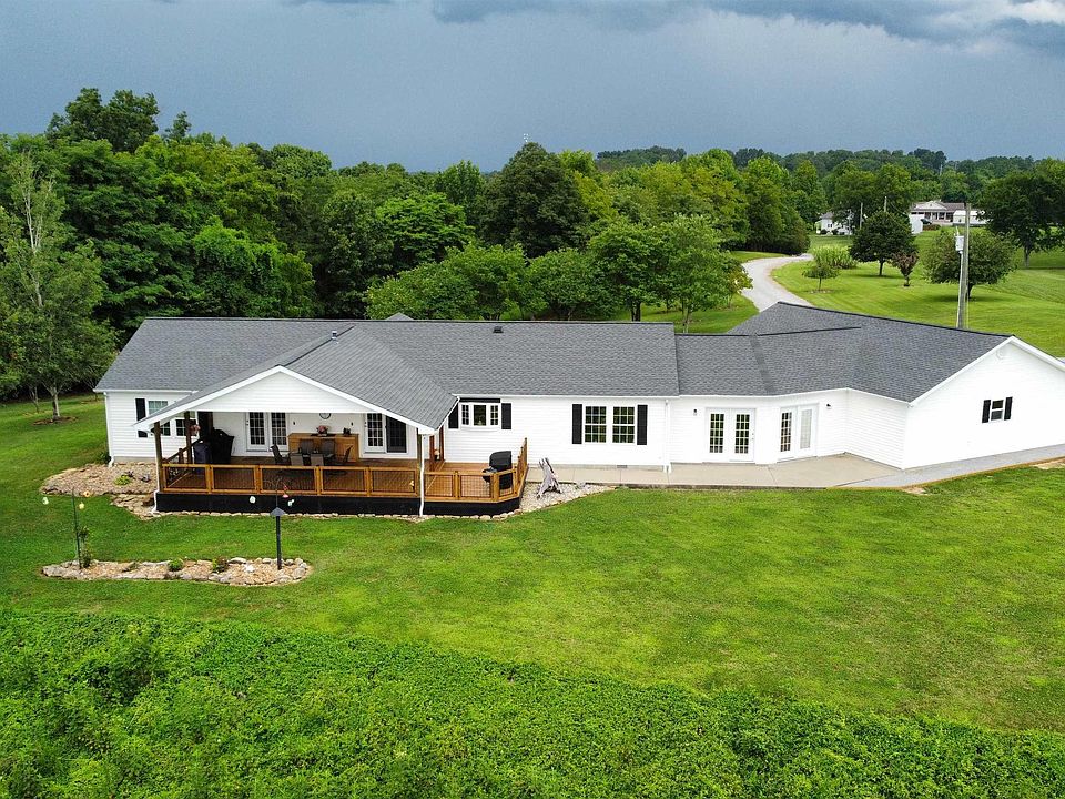 Nestled on 10.5 stunning acres bordering Refuge State Park, this 2,519 sq. ft. 2-3 bedroom, 2-bathroom home offers a perfect blend of natural beauty and modern comfort. Perched on a bluff, it boasts breathtaking views of historic Golconda, Lusk Creek, and the Ohio River from the expansive 16x40 covered deck. Hunters will be thrilled with the property’s proximity to Refuge State Park, offering unparalleled access to prime hunting grounds, while food plots on the estate attract abundant wildlife, making it a true haven for nature enthusiasts. For horse lovers, the mostly green pastures are perfect for grazing, and you can saddle up and ride directly into Refuge State Park to enjoy its scenic trails. The property is equipped with a 40x30 attached garage with front and side entry vehicle access, a 50x30 heated detached garage with attic storage and a 17x50 lean-to, plus an additional 16x22 lean-to for outdoor equipment and a 24x12 workshop for projects and hobbies. The home features luxury plank flooring, fresh paint, a modernized fireplace surround, and updated light and plumbing fixtures, with solid 2x6 construction ensuring long-lasting quality. Recent exterior updates include new shutters, decking, wrought iron railing, and lighting, while an outdoor entertainment area with electricity, a firepit, and a 20' flagpole add extra charm. A gated entry enhances privacy and security, and a storm shelter in the attached garage provides peace of mind.