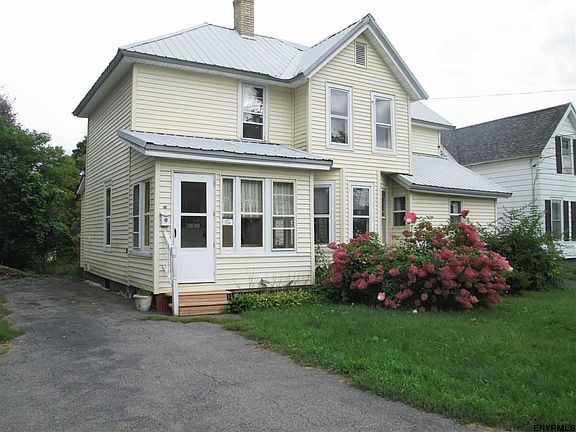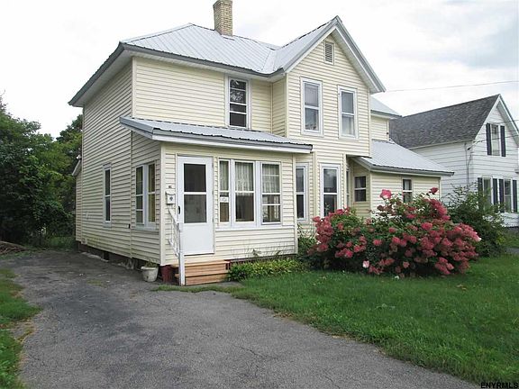 Original farm house style two story family home with 3 bedrooms on second floor, small first floor bedroom, Kitchen with appliances, full bath, Kitchen & dr floors done in 2013, formal dining room and living room. Nice enclosed porch on front, covered porch on rear done in 2012. Gas HWBB heating, Vinyl siding done in 2007, metal roof done 1996, newer windows..Fantastic 340' deep fenced yard for all kinds of gardening and fun. Shed done in 1999. Needs cosmetic updating and painting.