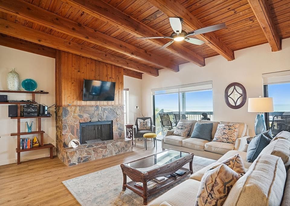 Located directly on the beach in Treasure Island, Florida, this 2 Bedroom, 2 Bathroom condo is equipped to sleep 4 and is perfect for your next beach getaway! The unit is fully equipped with everything you need for a comfortable stay. This unit features an open floor plan living, dining, and kitchen area decorated in all shades of wood, sea greens and blues. The living room has beautiful coastal furniture for your comfort. There's also complimentary Wi-Fi and a flat screen TV in the living room for your enjoyment. This tastefully decorated condo has a fully equipped kitchen with all you'll need to prepare a delicious meal for your guests! Don't forget to spend some time lounging on the well-furnished balcony. Enjoy the breeze after a day in the sun. There is seating around the pool with an additional outdoor seating area for the family to gather. he unit is fully equipped with everything you need for a comfortable stay. This unit features an open floor plan living, dining, and kitchen area decorated in all shades of wood, sea greens and blues.