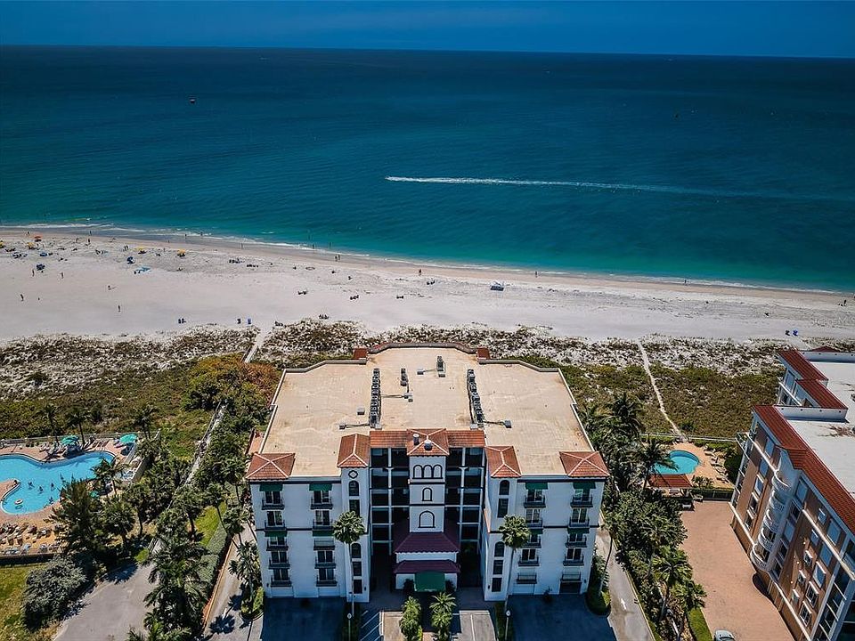 Beautifully remodeled direct gulf front condo in the exclusive Marquesa Condominium. This 17-residence, boutique building is positioned on the sugar-sand beach of Treasure Island, FL. Located down a quiet street off Gulf Boulevard, with a secured private garage, residents enjoy the peace of their own private getaway. The residence offers an oversized one-car personal garage and additional parking in the front of the building. on the market, this abode features private views via an oversized balcony granting unbelievable visibility of the Gulf’s sparkling waters. The terraced layout of the residence provides supreme serenity and seemingly private horizons. It’s like having your own beach house with the perks of condo living. The balcony space can accommodate sizable dinner parties and is fully protected by “one-touch” electric hurricane shutters. The icing on the cake is the extensive 2024 renovations that removed interior kitchen walls for maximum Gulf of Mexico views and created a culinary masterpiece. Painstaking detail went into the construction and re-design which entailed raising the kitchen ceiling, rerouting electric, new lighting, a new suite of appliances, custom cabinetry, luxury Cambria countertops and a remastered layout to optimize entertainment space. The stately primary bedroom touts phenomenal water views with a majestic en-suite bathroom complete with separate vanities, walk-in closets, dual water closets for the ultimate privacy, separate shower and spa tub. Family members & guests will enjoy their own quarters with two additional, spacious bedrooms all with large walk-in closets and their own en-suite bathrooms. The home’s laundry room has also been meticulously renovated with space for a full size washer and dryer. The pocket closet door leads to the mechanicals which include a brand new tankless hot water heater and a 2020 17-SEER Trane air conditioning system with air purification. A short ride down the elevator takes you to your secured and private garage space with its own one car garage enclosure perfect for stowing your vehicle and beach gear. Steps from your garage is access to a private pool, pedestrian bridge for beach access and nearby boardwalk path. If you're looking for a permanent vacation along the Gulf beaches, Marquesa is the ideal choice. Two convenient International airports are nearby: Tampa International Airport and St. Petersburg/Clearwater International Airport. Private aviation is also offered via Albert Whitted Airport. This beachfront gem offers unparalleled luxury and a truly exceptional living experience.