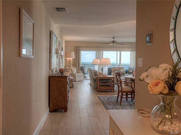Paradise on the beach with unobstructed views of the Gulf on Treasure Island. No detail overlooked in this meticulous $200,000+ renovation. Floors in the living areas are Italian ceramic wide-plank tiles. Bedrooms, luxurious carpet. Kitchen features Turkish Emperador Granite, 42âEUR custom cabinets. Stainless GE Elite appliances. Convection oven and convection microwave, disposal, under cabinet lighting, wine cooler, stainless sink with glass tile end-unit is adorned with a large balcony that spans the entire width with views of the beach, and spectacular sunsets. The Gulf and the beach is visible from the master, living areas and kitchen. Spacious open floorplan perfect for entertaining. 2nd and 3rd bedrooms can be closed off to make a private suite. Every bedroom has its own bathroom. Master suite has volume ceilings, Gulf view, balcony access, and his and hers walk-in closets. Master bath suite has Italian tile, 2 Kohler sinks, granite, glass enclosed shower, Kohler tub, Toto toilet & bidet. Carrier Phase 2 HVAC installed in October 2017. Property is protected by Rolladen electric hurricane shutters and Simonton Stormbreaker Cat 5 hurricane windows. Casablanca fans throughout. Downstairs, a dedicated, secure, private single-car garage has plenty of space for storage. The garage door is opened by a LiftMaster belt-driven garage door lifter installed April, 2016. Building has new paint, new outdoor lighting, new drive and parking lot.