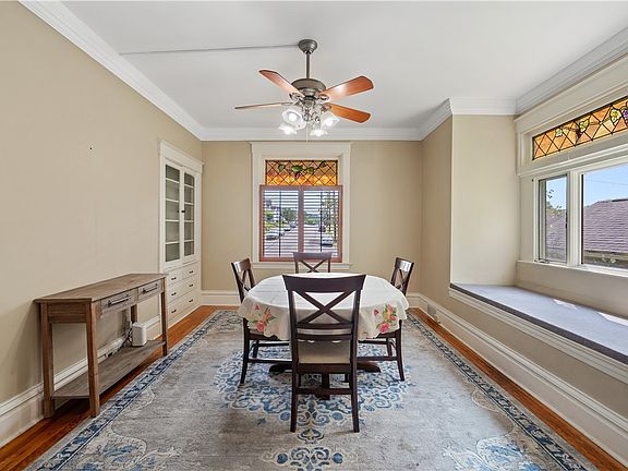 Situate in Oak Hill Area. Relax on the beautiful front porch or the private wooded closed in back porch. Well maintained hardwood floors, 9ft ceilings and large stained glass windows on the main floor allow for bright natural lighting throughout. Nap, read, relax in wide window bump out. Spacious living room with fireplace. 2nd floor boasts 3 bedrooms and a full bath. Finished basement with fireplace and separate laundry area, full bath and loads of storage. Updated water tank, furnace, roof, windows and screens.