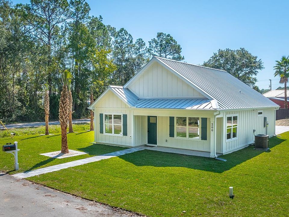 SELLER IS OFFERING $10k TOWARDS CLOSING COSTS when choosing Sellers preferred lender. X FLOOD ZONE. This brand-new 3-bedroom, 2-bathroom home in charming Apalachicola delivers quality construction with a smile. Built with durable Hardie Board siding, spray foam insulation(roof & exterior walls), and a metal roof, this house means business when it comes to lasting comfort. The thoughtful design features solid wood cabinets with soft-close doors, leathered granite countertops, and upgraded flooring throughout. You'll love the modern touches like Moen black faucets, stainless steel Frigidaire appliances with air fry capability, and a tankless water heater with whole-house filtration. Tile Primary suite shower. The insulated golf cart garage keeps your ride ready for quick trips to downtown's shops and restaurants. Access your covered patio – perfect for morning coffee or evening relaxation. Located just minutes from the public boat launch and 15 minutes to beautiful St. George Island pristine waters, this home puts you close to water adventures while keeping you connected to Apalachicola's vibrant community. Construction completes September 2025 with a 1yr Builder Warranty.
