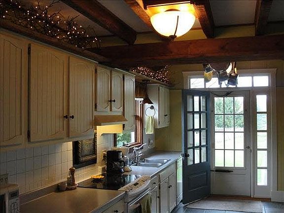 Charming renovated farmhouse with lots of character and todays modern conveniences.Private lot with mature landscaping, perennials and herb and vegetable gardens. Lots of hand hewn beams,a brick fireplace in the family room and wood stove in the livingroom, wide board pine flooring,a screened in porch,stone outdoor fireplace, an outbuilding that is currently being used as summer office space for the owner and a pool house for summer entertaining around the inground pool. 1/2 mile to Baird Park and 3 miles to the TSP! Beautiful!