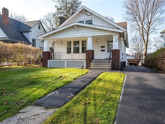 Charming & well-maintained 2 family home located on a very desireable street in the heart of Eastwood! Solid cared for property for an investor or an ideal property that's perfect for an owner occupant! 1st floor features a large open front porch into a nice foyer entry w/closet, all spacious & bright rooms have new top of the line Comfort windows w/lifetime warranty, gorgeous & gleaming hardwood floors & high ceilings throughout. Cozy livingroom w/gas fireplace & accent wall of built-in book shelves, beautiful formal dining room, eat-in kitchen w/ceramic tile floor boasts plenty of cabinet & countertop space plus 3 generous sized bedrooms & full bathroom. Full basement has washer & dryer accomodations. Recently renovated & spacious 2nd floor apartment has long time tenant currently on month to month basis. Many updates & home improvements both inside & outside include roof, gutters, windows, storm doors, kitchen appliances, sinks, floors, driveway, sidewalks, light fixtures/fans, furnace & duct work, gas fireplace insert, basement foundation parging & tree/stump removal. Convenient location to highway access & walking distance to a variety of entertainment, shopping & restaurants.