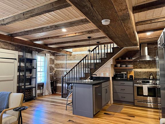 Thomas Barbee House, built circa 1790 and on the National Register of Historic Places and KY famed Bourbon Trail, presents the rare opportunity to own a piece of American history. Within walking distance of Constitution Square, downtown, and Centre College, the home recently underwent a major renovation restoring its walls, ceilings and floors to the 18th century while bringing its interiors to the 21st. A single-pen, 2 story log cabin (white oak logs) the home features a first floor open-living concept with a modern kitchen and living room with gas fireplace. A spacious bedroom, laundry, and bath comprise the 2nd floor, and 3rd floor sleeping loft welcomes guests Zoned residential and commercial, the home is turnkey for any endeavor, especially a short-term rental for visitors to Danville, Centre College and the Bourbon Trail as it is fully furnished. Additional lot presents opportunity for residential or commercial expansion. Thomas Barbee was a Revolutionary War officer, built the home and became the first postmaster west of the Alleghenies.