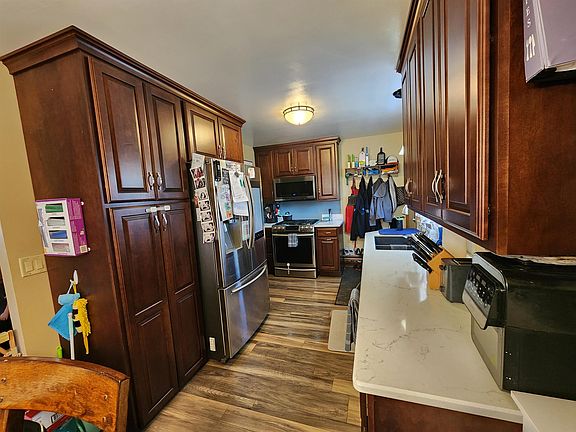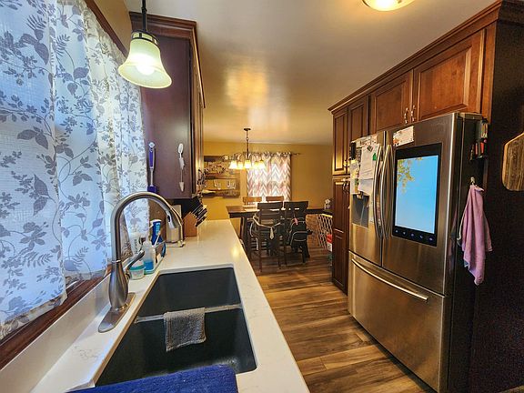 This charming ranch-style home in NW offers a comfortable and versatile layout. The main floor features two spacious bedrooms, with the potential for a third, and a beautifully updated full bath complete with heated floors and a tiled surround for added luxury. The primary bedroom features an oversized closet and a built-in vanity, providing both style and convenience.  The galley kitchen is a chef’s delight, featuring newer soft-close cabinets, quartz countertops, a gas stove, and a smart refrigerator, combining modern amenities with functional design.  The basement expands the living space with two egress bedrooms, an updated bathroom, and laundry room, and a partially finished family room, perfect for relaxation or entertaining. Additional storage ensures everything has its place.  Outside, enjoy the convenience of a small dog run between the house and the oversized one-car garage. The property sits on a corner lot, providing a spacious side yard with alley access—ideal for outdoor activities or future expansion possibilities.  Don't miss the opportunity to explore this lovely home today!