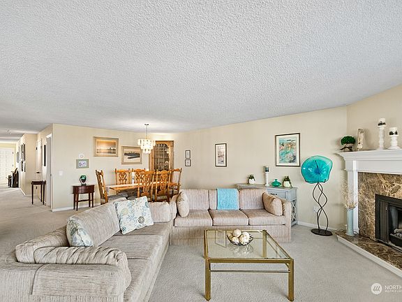 Sweeping Sound & Olympic Mountain Views await you in this spacious, West-facing Home with over 1,700 square feet of living space. The private Deck offers the perfect spot to unwind after a long day and enjoy the beautiful Sunsets. Ideally located just one block from vibrant Main Street, the Ferry Dock, and the Edmonds Waterfront. Light-filled Living room looks out over the West-facing Deck. Remodeled Kitchen plus Formal & informal Dining Rooms. Huge Primary Bedroom has walk-in Closet & private Bath. Guest Bedroom with built-in Murphy Bed. Two parking spaces included: one in the Gated Garage & one space on the Alley. Storage closet on the Deck + large walk-in Storage Closet downstairs with work bench & Drawers. Caring 55+ Community